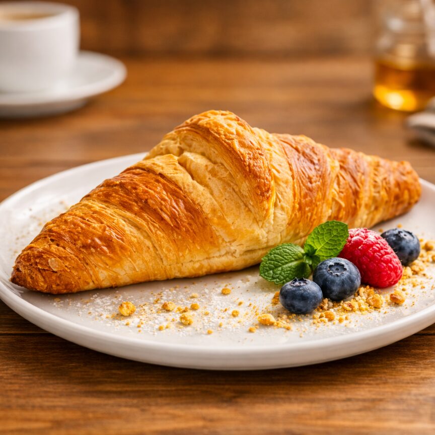 Un verdadero croissant mantequilla, con una textura hojaldrada irresistible y un interior suave que deleita a cada bocado.