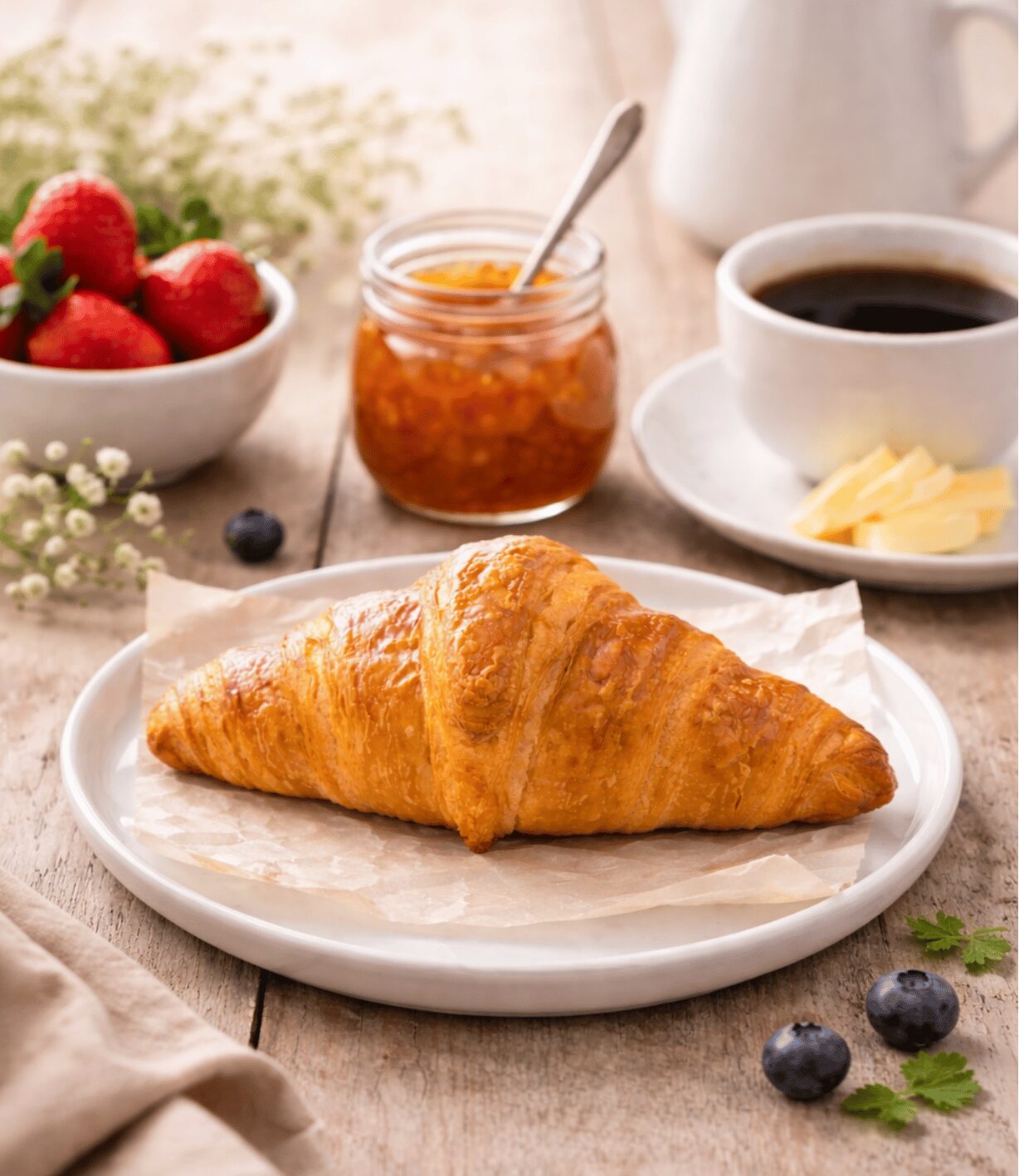 Elaborado con margarina premium, este croissant ofrece una textura hojaldrada y un sabor equilibrado que lo hace ideal para el sector HORECA (hoteles, restaurantes y catering).