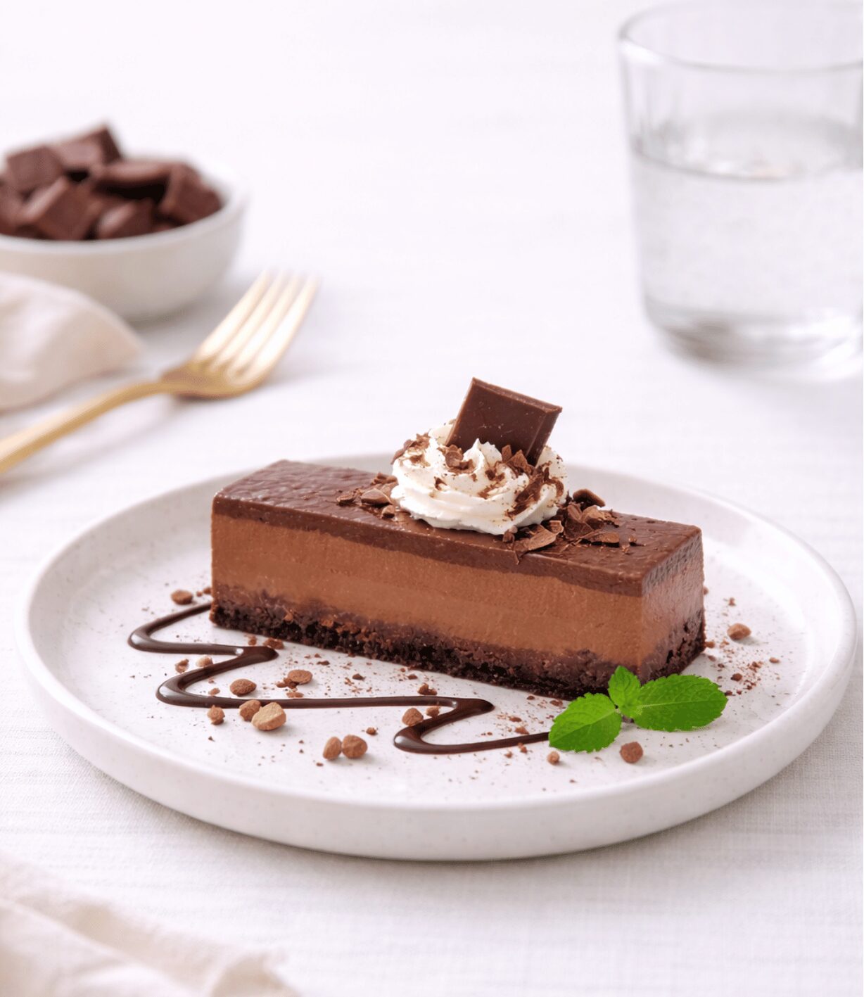 Cada lingote fusiona capas de suave crema de leche, leche semidesnatada y yemas de huevo, con un bizcocho de cacao esponjoso.