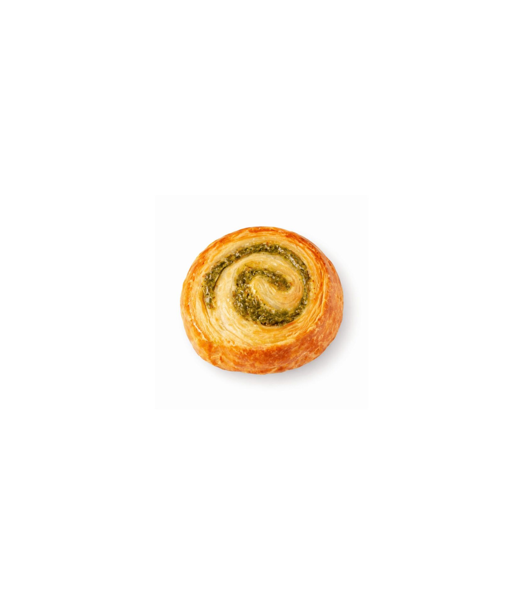 Mini roll elaborado con masa suave y delicadamente dorada, enrollado con un relleno aromático de pesto a base de albahaca. Su formato práctico lo convierte en una opción ideal para catering, coffee breaks, vitrinas o como acompañamiento gourmet.