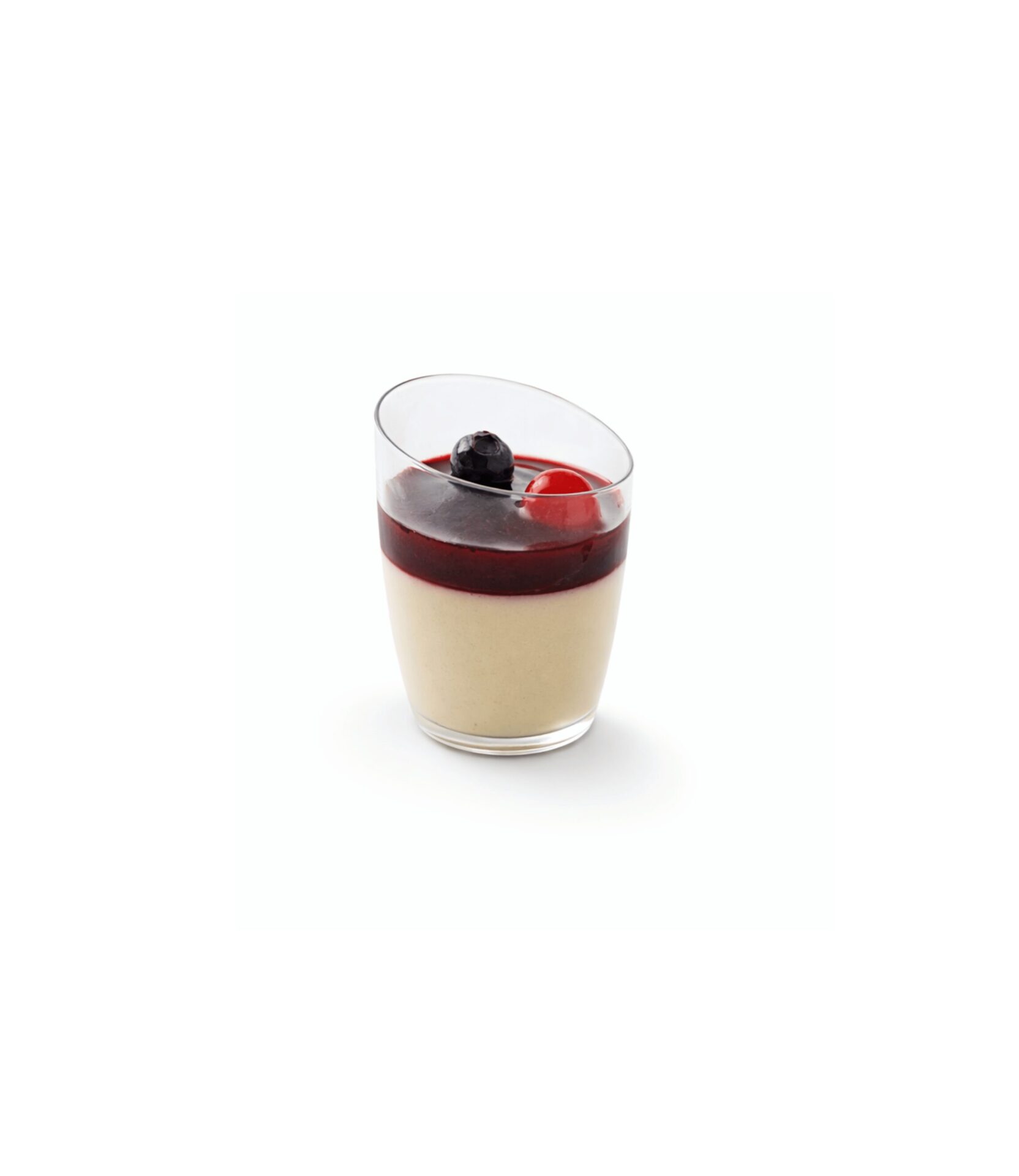 Para una mejor textura, mantener refrigerados entre 2 °C y 6 °C hasta el momento de servir. Si se desea potenciar el sabor, retirar del frío 5 a 8 minutos antes del consumo para que las cremas se atemperen ligeramente. Para montaje en vitrina, colocarlos en diferentes alturas para destacar las capas visibles y reforzar su atractivo visual. Si se personalizan, añadir toppings frescos justo antes de exhibir para conservar textura y brillo.