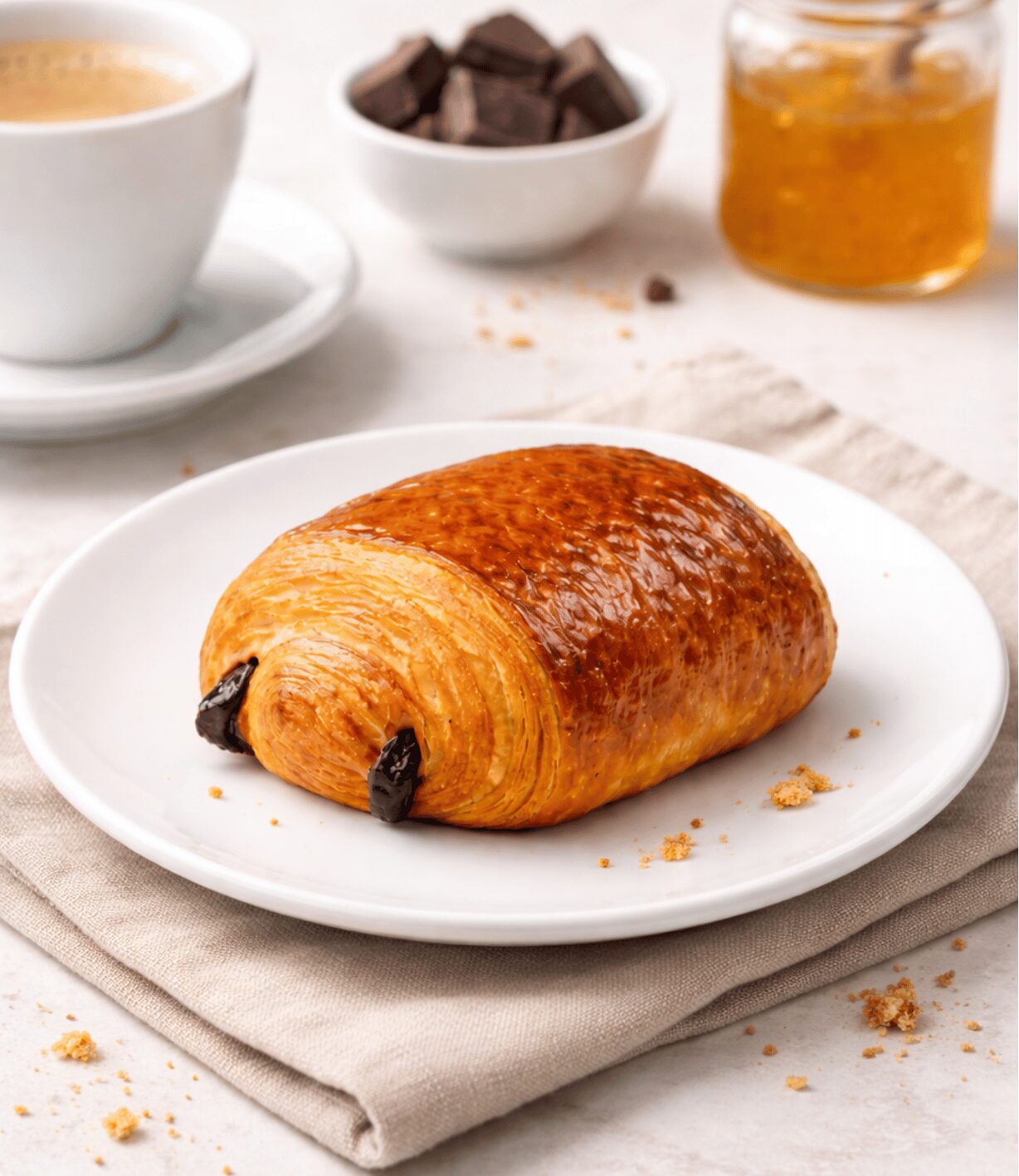 Nuestro Pan de Chocolate Francés es una delicia que combina la autenticidad de la bollería francesa con el intenso sabor del chocolate negro. Elaborado con mantequilla pura, este pan de chocolate ofrece una experiencia crujiente gracias a su masa de hojaldre, que contrasta perfectamente con el relleno profundo y equilibrado de chocolate.