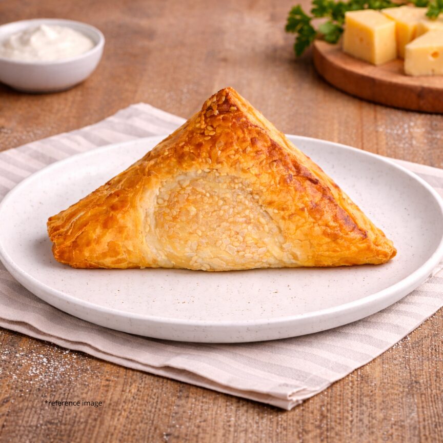 Made with premium wheat flour and real butter to create a rich, flaky pastry with a delicate golden crust. Filled generously with a creamy, indulgent cheese blend crafted from carefully selected cheeses, delivering a smooth texture and well-balanced savoury flavour in every bite.