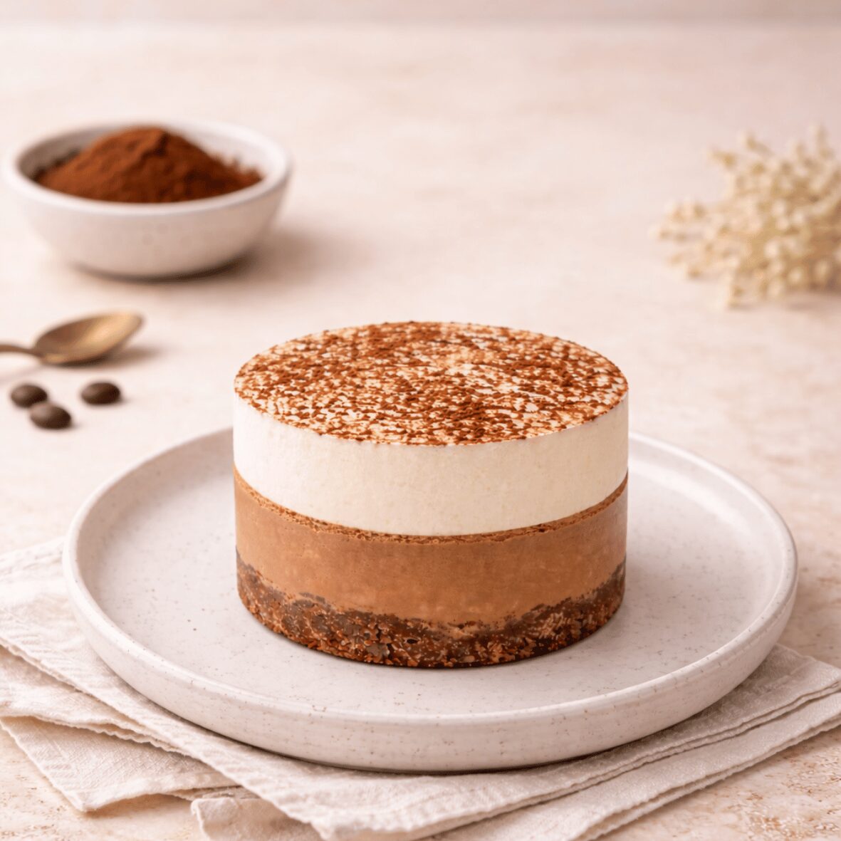 Descubre el exquisito Cappuccino ultracongelado, una deliciosa combinación gourmet. Este postre innovador fusiona un crumble de cacao y mantequilla con una suave crema de chocolate con leche y un toque sutil de café, coronado por una mousse ligera de leche y cacao en polvo.