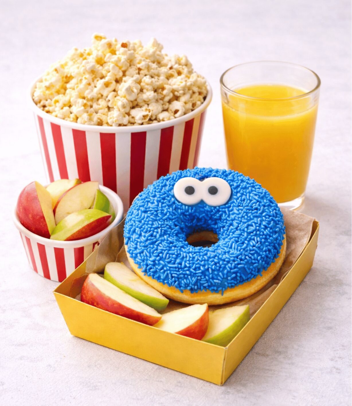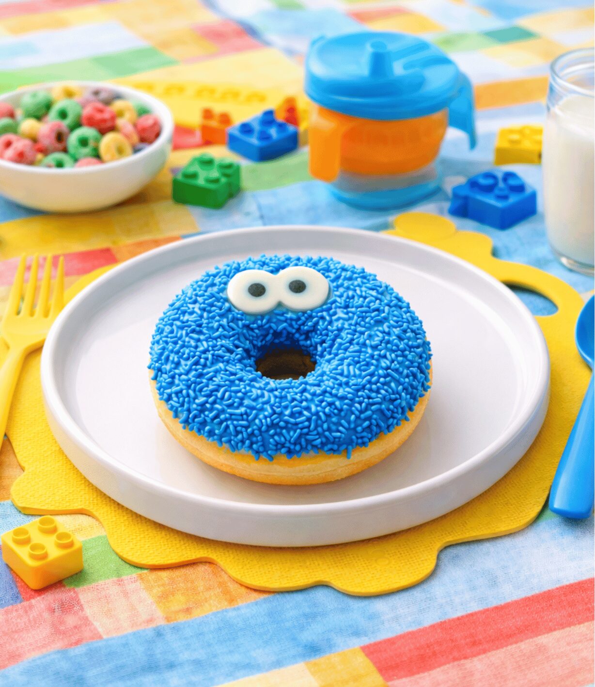 Descongele el donut a temperatura ambiente durante unos minutos antes de servir para mantener su textura suave y esponjosa. Puede calentarse ligeramente por pocos segundos para potenciar su aroma. Para una presentación más atractiva, sírvalo acompañado de leche, batidos o bebidas frías que complementen su estilo divertido.